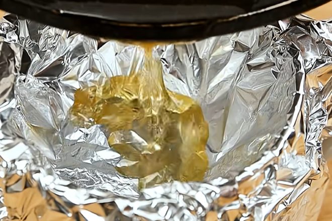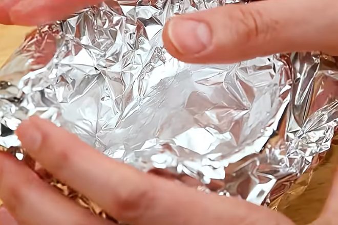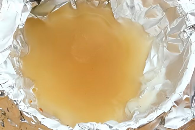 アルミホイルの上から油を注いで、しばらく放置すれば…。