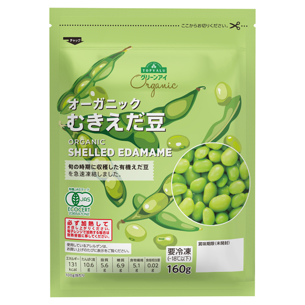 有機JAS認定農場で栽培したえだ豆を、鮮度が高いうちに急速凍結しました。料理に加えて彩りもプラス。