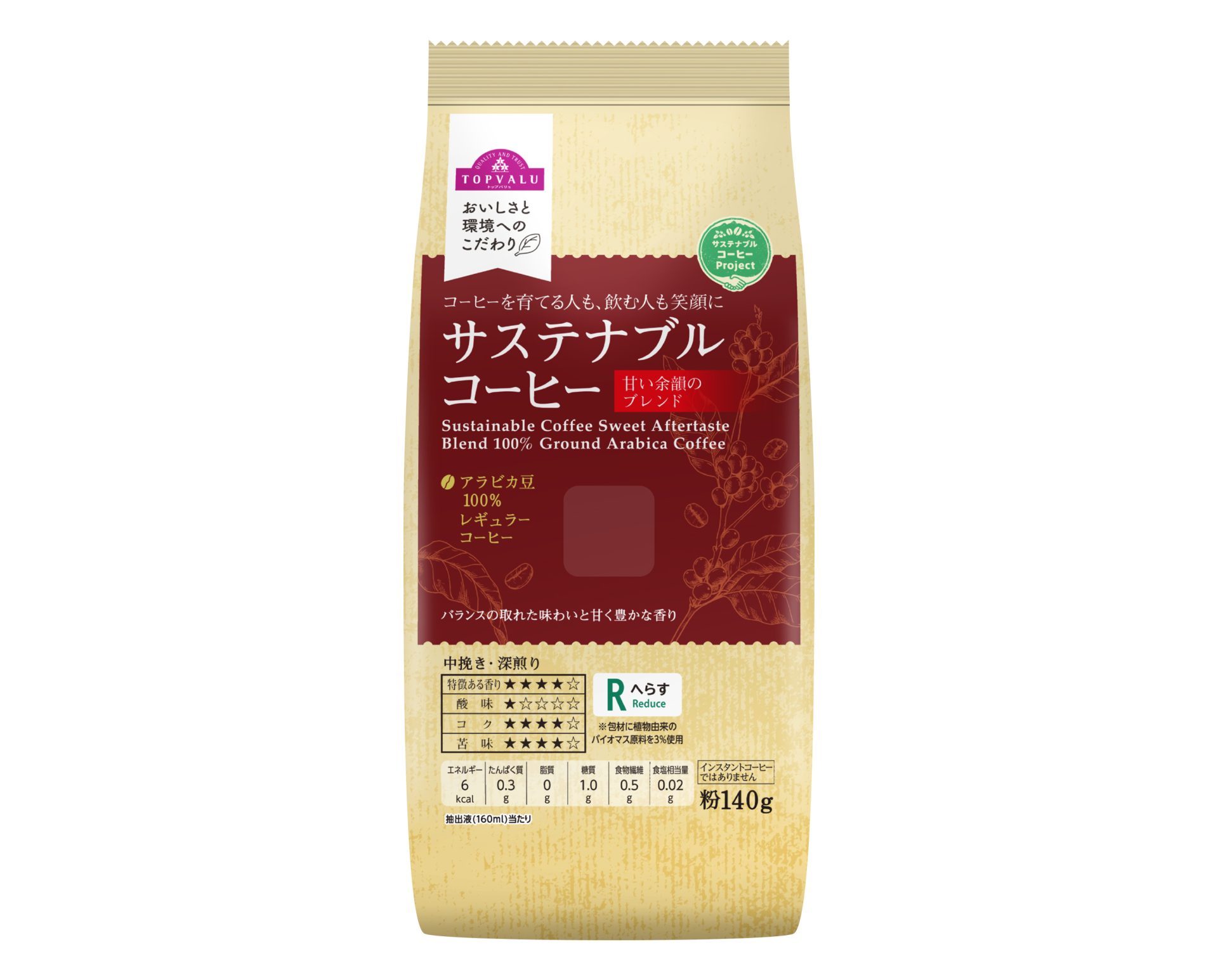 原料には「ベトナムアラビカG1(※)」を51%使用。甘み・苦味・酸味のバランスが特徴で、スペシャリティコーヒーにも使われる高品質な豆です。商品開発前に、イオンモールにある株主さま用ラウンジで提供したところ大変好評!その確かな品質と味わいから、サステナブルコーヒーに採用されました。※ ベトナム最高等級G1グレード:ベトナム科学技術省(Ministry of Science and Technology)によるグレーディング表によります