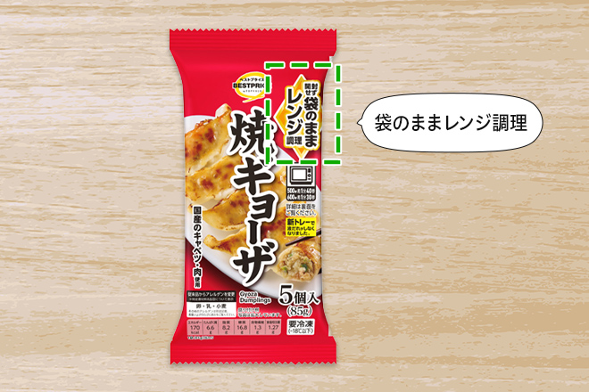 『焼ギョーザ』は外袋のまま電子レンジで温められる仕様。袋の中で熱が均一に行き渡り、最適なおいしさに仕上がるためです。ところが、お客さまから寄せられたのは「袋を開けてしまったけれど、どう温めればいい?」という問い合わせ。