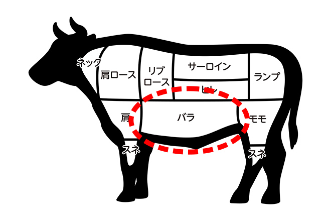 赤身と脂のバランスがいいバラ肉を使用しています