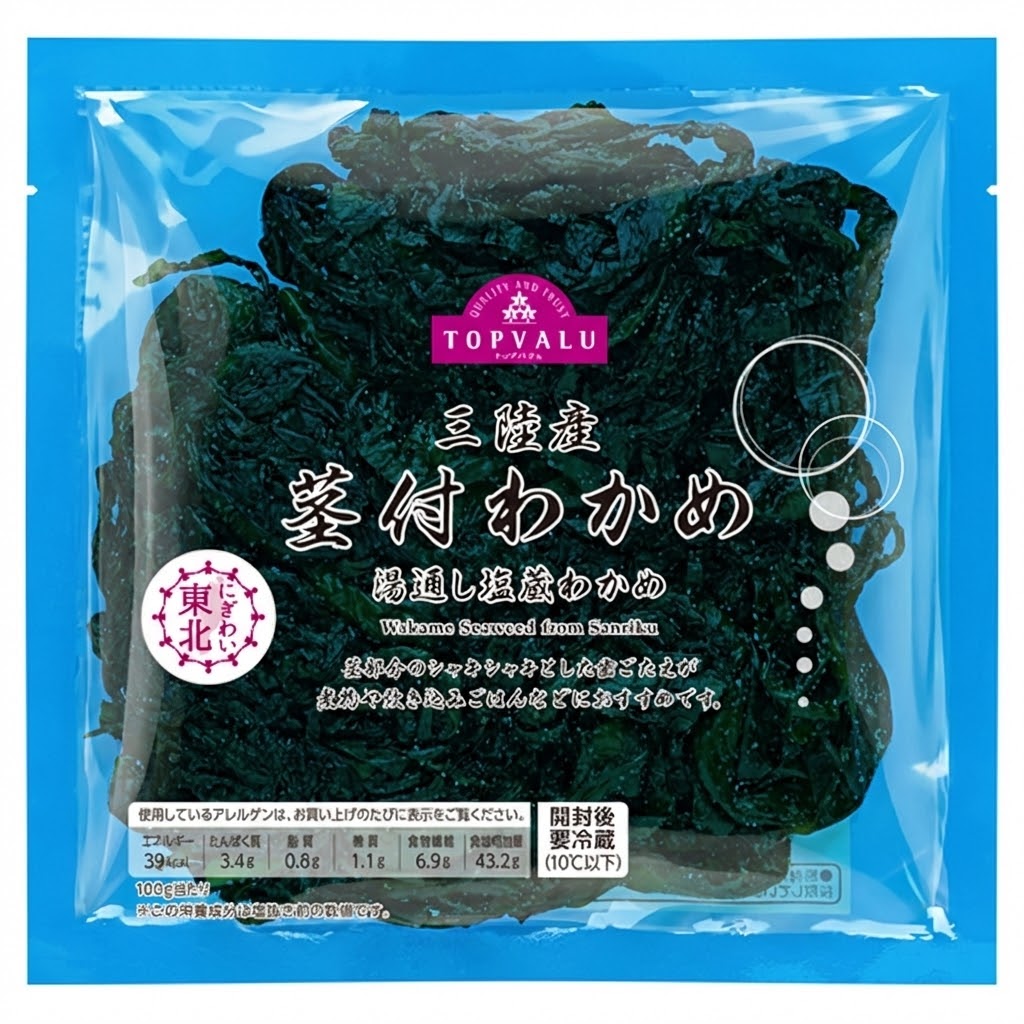 わかめのおいしさって、歯ごたえが大切だと思うんです。トップバリュが扱う三陸産は、太平洋の荒波にもまれて育つため、歯ごたえがよくシャキシャキ。私は、日本で有数のわかめだと思っていますし、周囲でも「三陸産がいちばんおいしい」という声を聞きます。